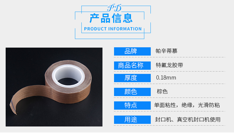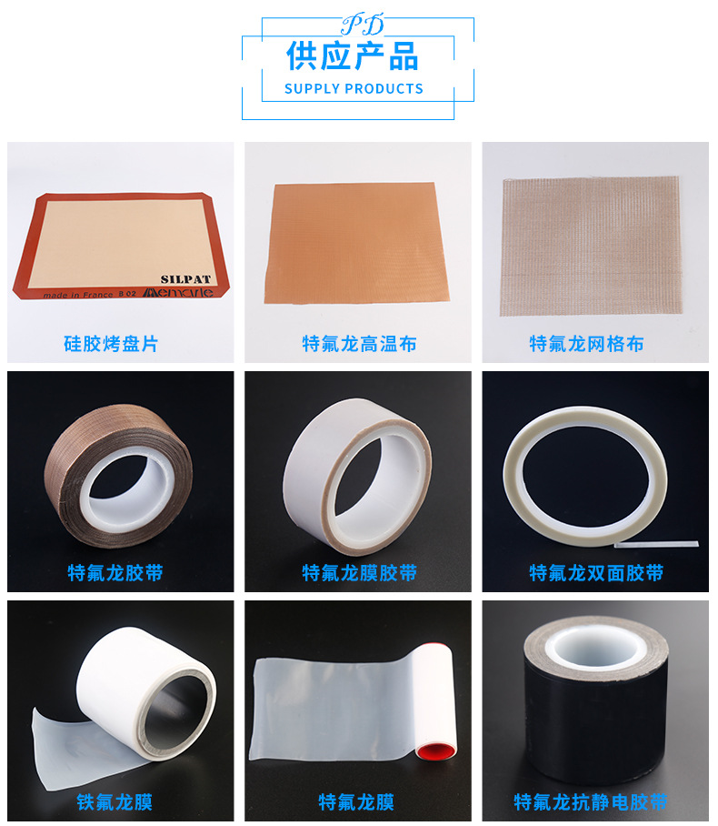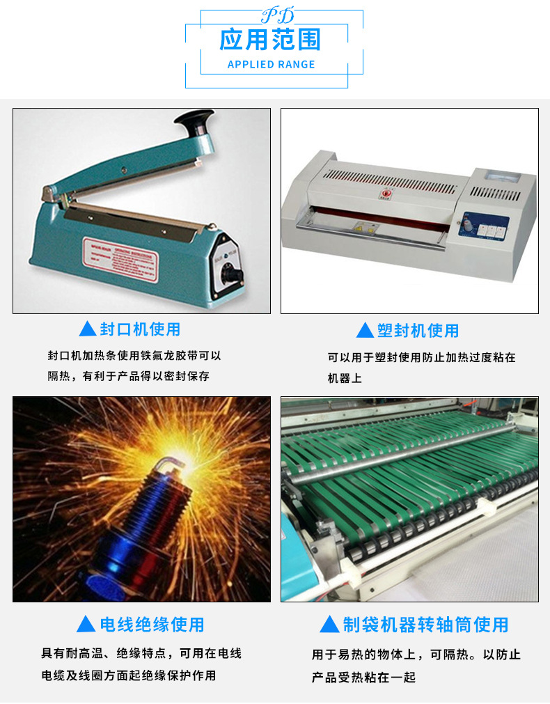 帕辛蒂慕專注優質PTFE鐵特氟龍食品包裝封口機防粘耐酸堿絕緣耐高溫高溫布膠帶