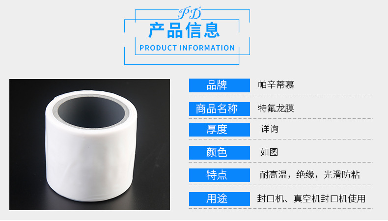 聚四氟乙烯薄膜又名特氟龍膜、鐵氟龍膜廣泛應用于FPC柔性電路板、化工、石化、煉油、氯堿、制酸、磷肥、制藥、化纖、染化、焦化、煤氣、有機合成、有色冶煉、鋼鐵、原子能及高分子過濾材料、高純產(chǎn)品生產(chǎn)(如離子膜電解),粘稠物料輸送與操作,衛(wèi)生要求高度嚴格的食品、飲料等加工生產(chǎn)。